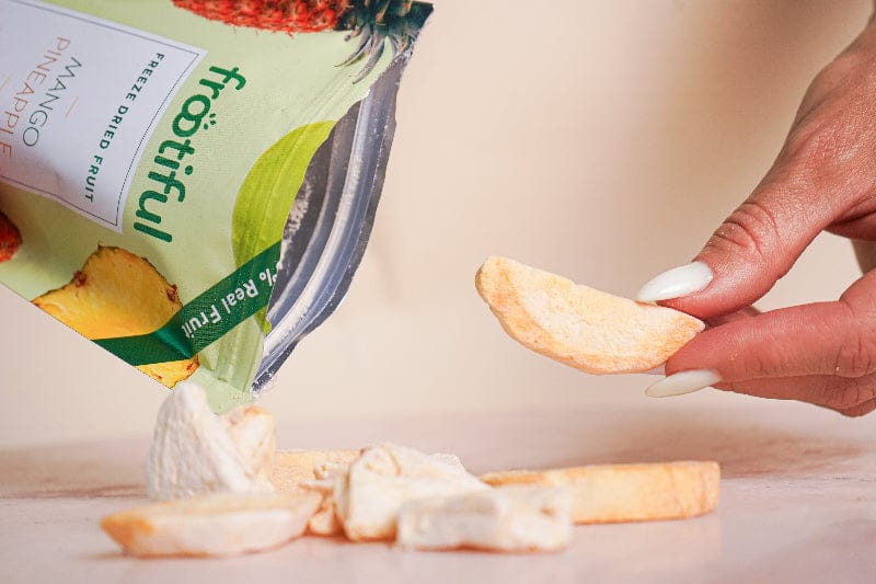 Vom Feld direkt in die Tüte. Entdecken Sie unsere exquisite Mischung aus gefriergetrockneter Ananas und Banane. Diese natürliche Köstlichkeit bewahrt eine große Menge der ursprünglichen Nährstoffe und den intensiven Geschmack der frischen Früchte. Der perfekte Snack für unterwegs, als Topping für Ihr Müsli oder als gesunde Alternative zu Süßigkeiten.