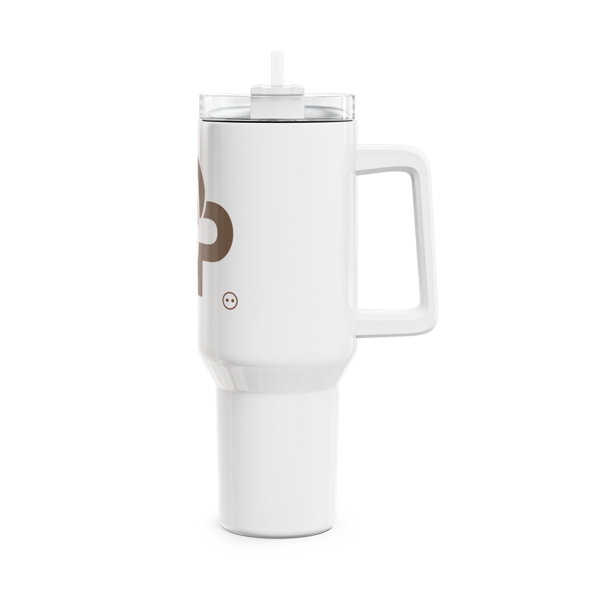 – Glossy finish with comfortable molded handle — slips into most cup holders