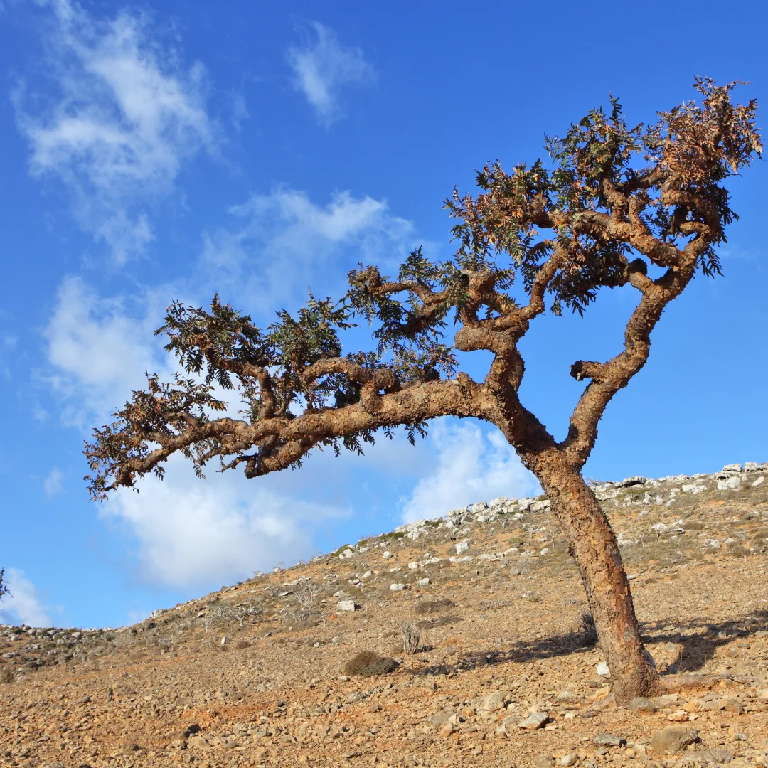 Der Weihrauch Aden Cateri ist ein besonders feines Harz des Boswellia carterii-Baumes, das aus den trockenen Regionen Somalias stammt. Seine helle, bernsteinfarbene Körnung und der klare, zitronig-balsamische Duft machen ihn zu einem der beliebtesten Weihrauchsorten der arabischen Halbinsel.